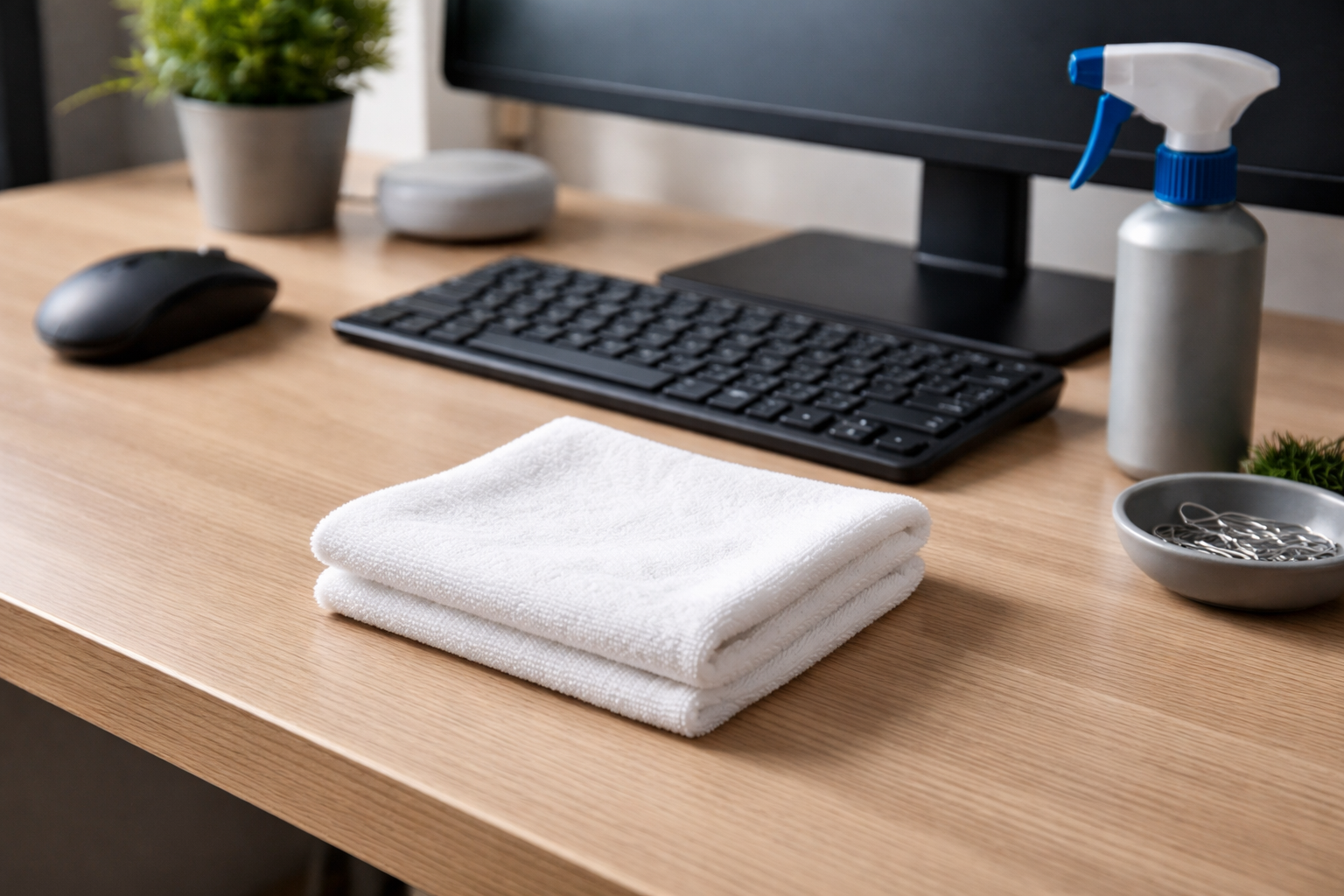 Nadležni prah na monitorju, naključne kapljice čaja in lepljive sledi na mizi vam takoj pokvarijo razpoloženje in zmanjšajo koncentracijo. Obstaja osnovna navada, ki te težave reši v nekaj sekundah in popolnoma spremeni vaš pristop k vzdrževanju reda.