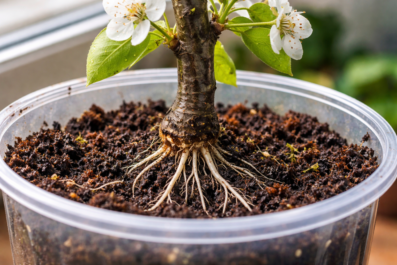Ko poganjka ločimo od matičnega debla, ga prikrajšamo za glavni vir vlage in mineralov. Koreninski sistem je odgovoren za neprekinjeno oskrbo z mikrohranili, potrebnimi za nastanek plodov. Avtonomna veja ima le omejen preskrbo s hranilnimi snovmiki zadostuje le za odprtje brstov.