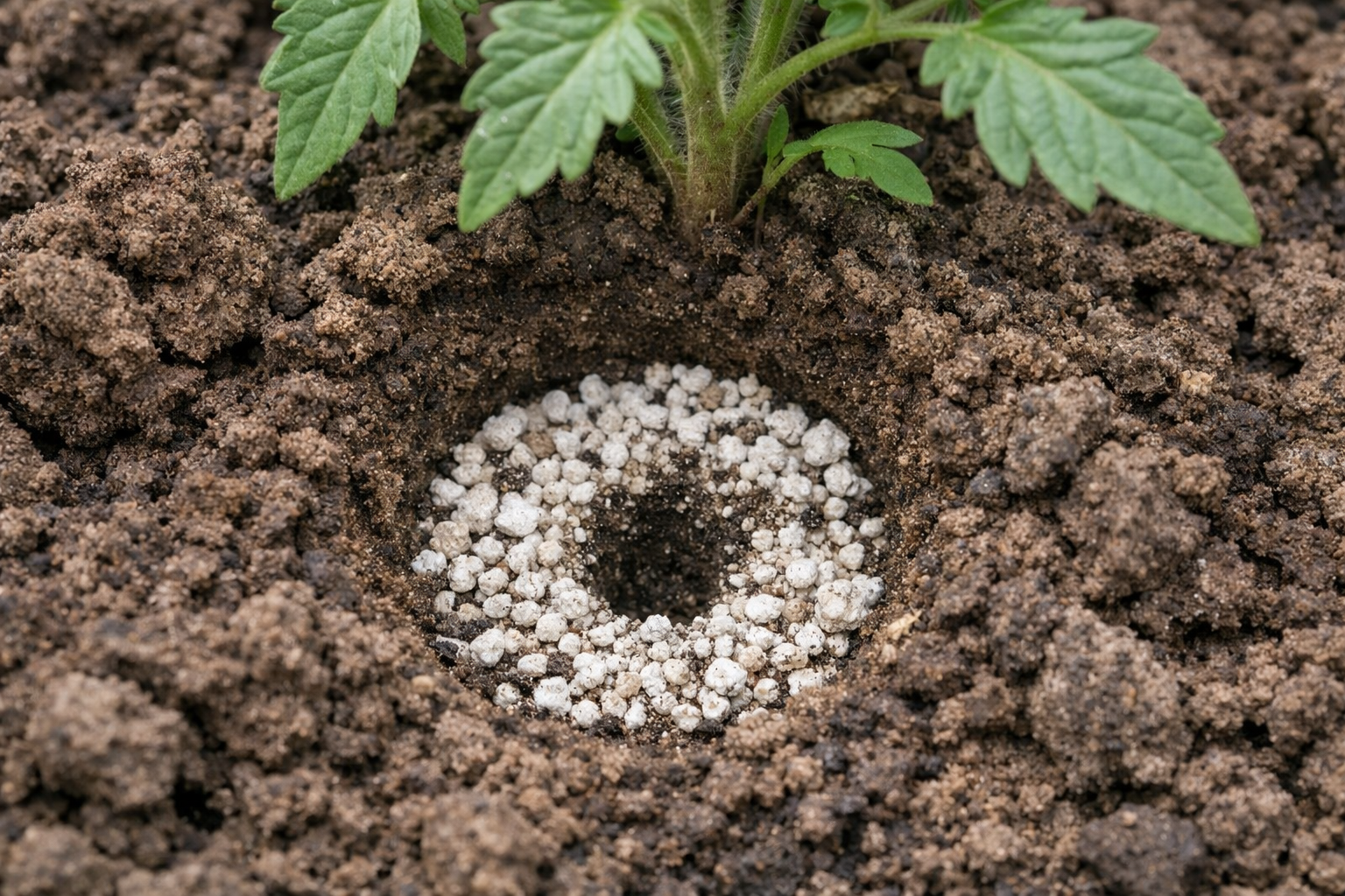 Glavna skrivnostna niansa je, da ne vlijete le rahljalca, temveč da zemljo z lesenim nabodalom previdno prebodete do globine približno petih centimetrov okoli sadike in neposredno v te luknje vlijete perlit.