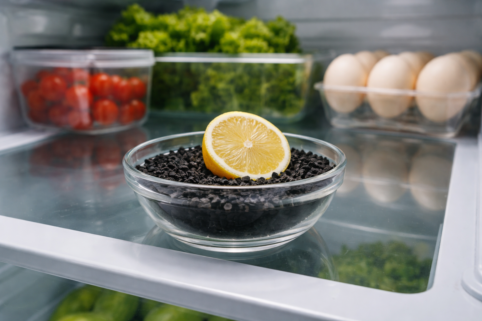 Tudi soda bikarbona deluje dobro, vendar absorbira molekule veliko počasneje in zahteva odprto posodo z veliko površino.