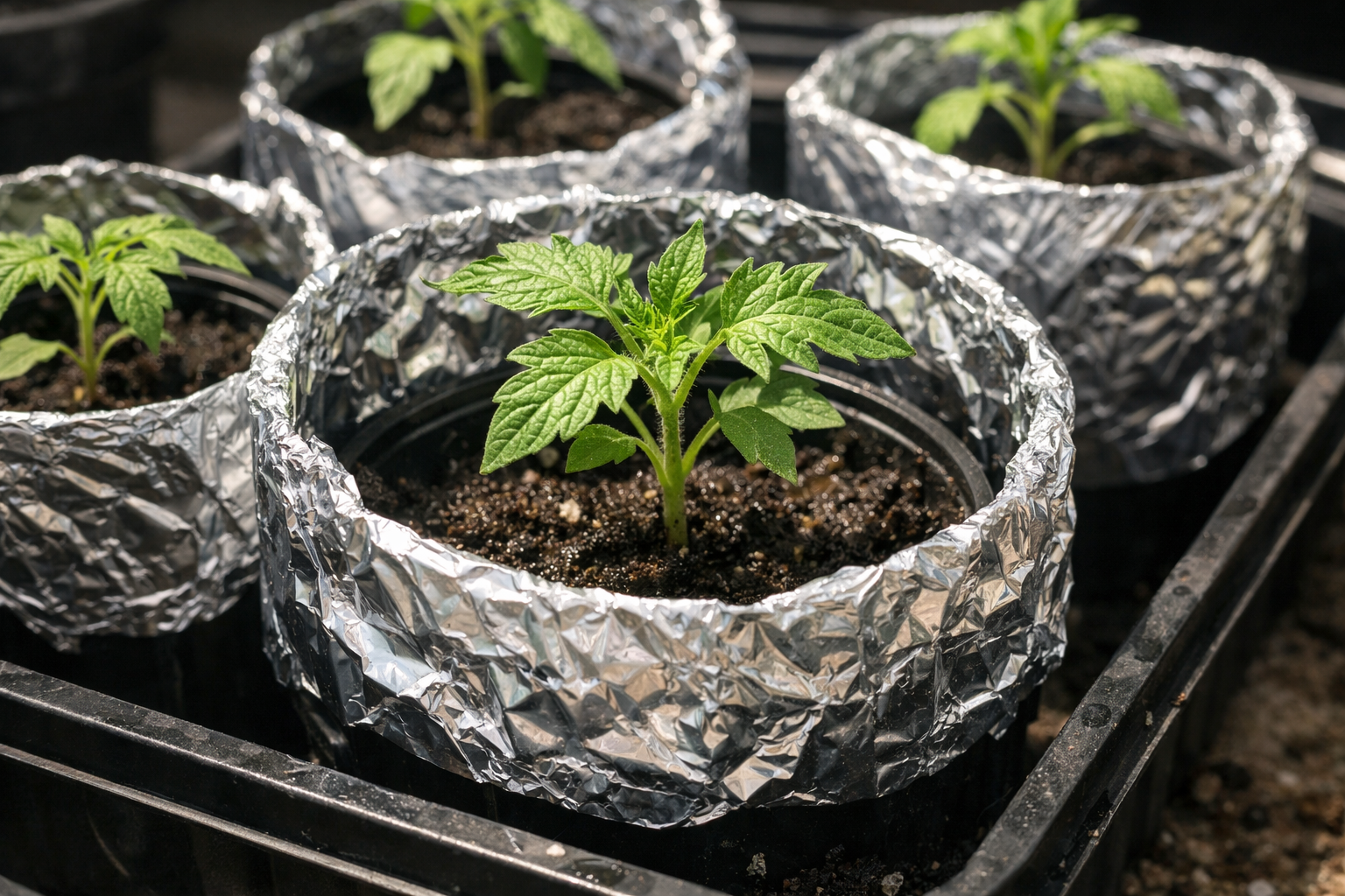 Moj osebni preizkušeni trik proti pregrevanju korenin na južnih oknih je, da plastične skodelice tesno zavijemo z navadno folijo za živila s svetlečo stranjo navzven.