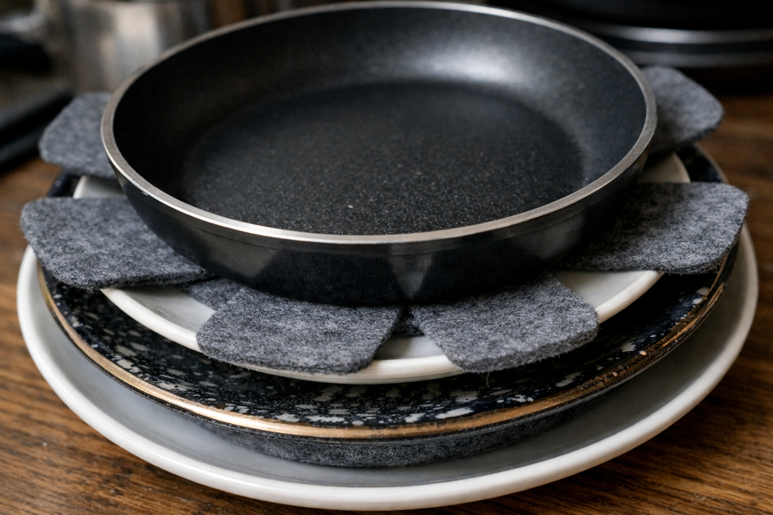 Vsakič, ko vzamete svojo najljubšo ponev ali slavnostni krožnik, ga s pridušenim dihom pregledate, ali na njem ni novih prask. Shranjevanje posode na kupu neizogibno privede do poškodb prevleke in odkruškov, vendar vam bom pokazal, kako lahko to težavo v nekaj minutah rešite s preprostimi pregradami. Na poškodovan teflon in uničen porcelan boste za vedno pozabili.