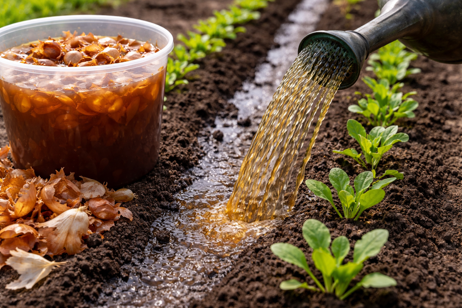 Posušene luske navadne čebule vsebujejo močan koktajl koristnih elementov. Glavno violino pri tem igrajo fitoncidi – naravni antibiotiki, ki zavirajo rast patogene mikroflore. Zemlja se mora po zimi nežno prebuditi in ekološko zalivanje je najboljši način za to.