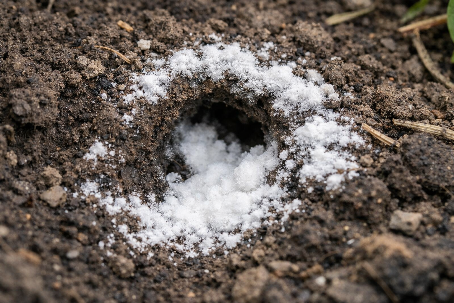 Skrivni odtenek: če so tla presuha, najprej zalijte noro z navadno vodo. S tem boste “zatesnili” stranske veje, raztopina sode pa bo zadela cilj, ne da bi se predčasno vpila v stene.