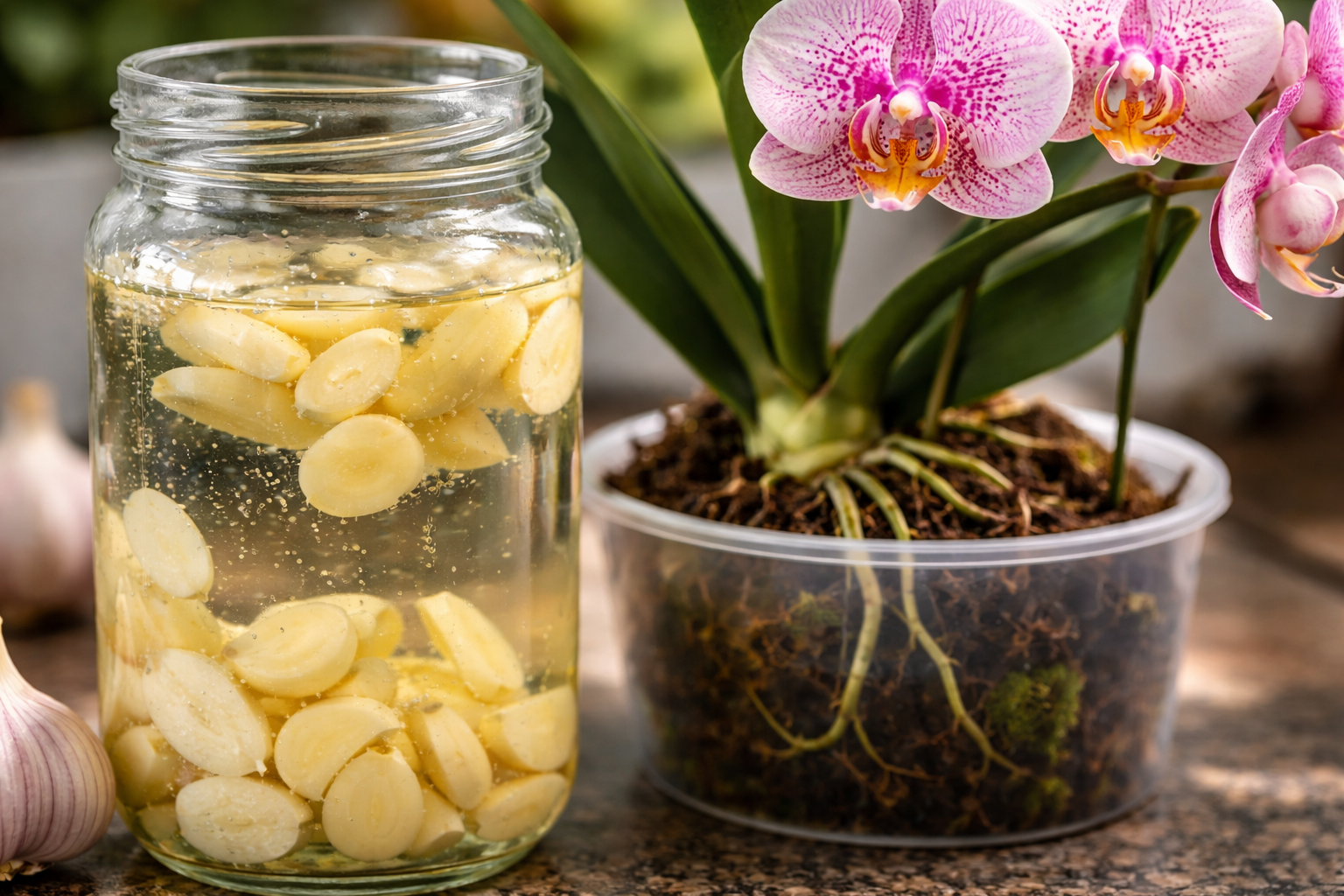 Mnogi ljubitelji sobnih rastlin podcenjujejo moč naravnih sestavin. Česen deluje kot naravno poživilo in močan fungicid hkrati. Vsebuje fitoncidefitoncidi, eterična olja in organske kisline, ki takoj razkužijo substrat in preprečijo razmnoževanje patogene mikroflore.
