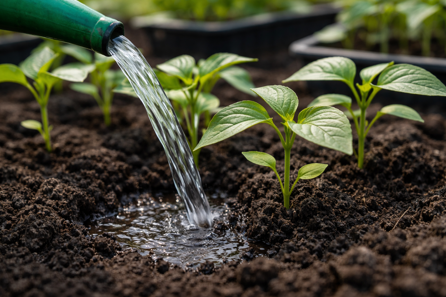 Nikoli ne zalivajte s cevjo, saj s tem takoj erodirate zgornji sloj zemlje in izpostavite nežne korenine mladih sadik.
