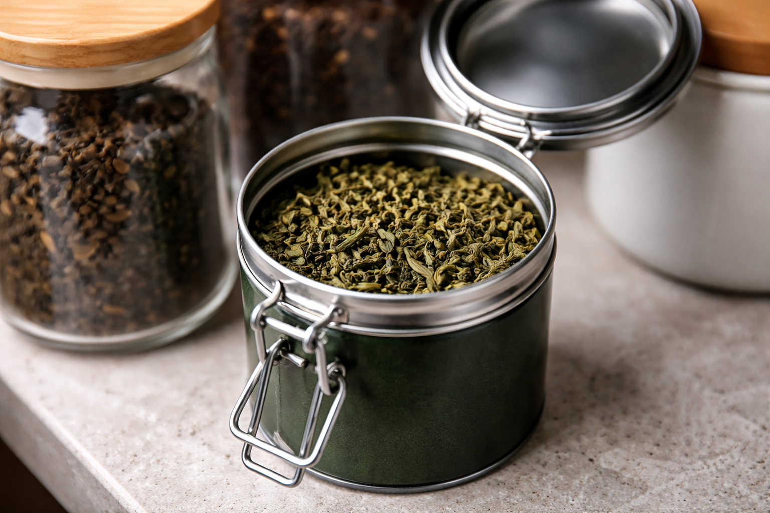 Glavni sovražniki kakovostnih listov so. vlažnost, sončna svetloba, kisik in ostre vonjave. Neustrezno vzdrževanje sproži proces oksidacijaki uniči vse dobrote in okus. Pomembno je, da natančno razumete, v čem naj bo zaloga shranjena.