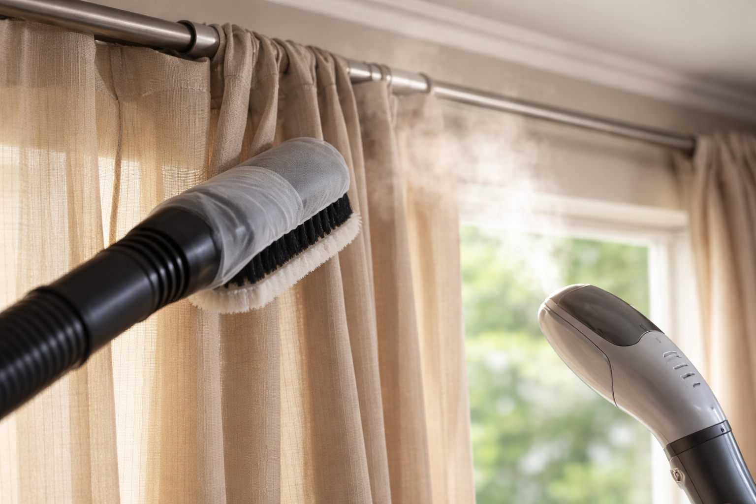 Posebno pozornost namenite globokim pregibom, zavesam in zgornjemu robu zavesne palice, kjer se nabira največ prahu.