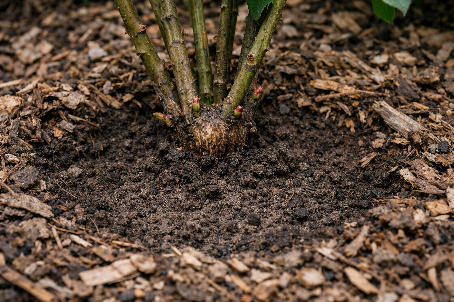 Nežno zgrabite staro mulčo stran od debla, da bo toplota hitro dostopala do koreninskega vratu.