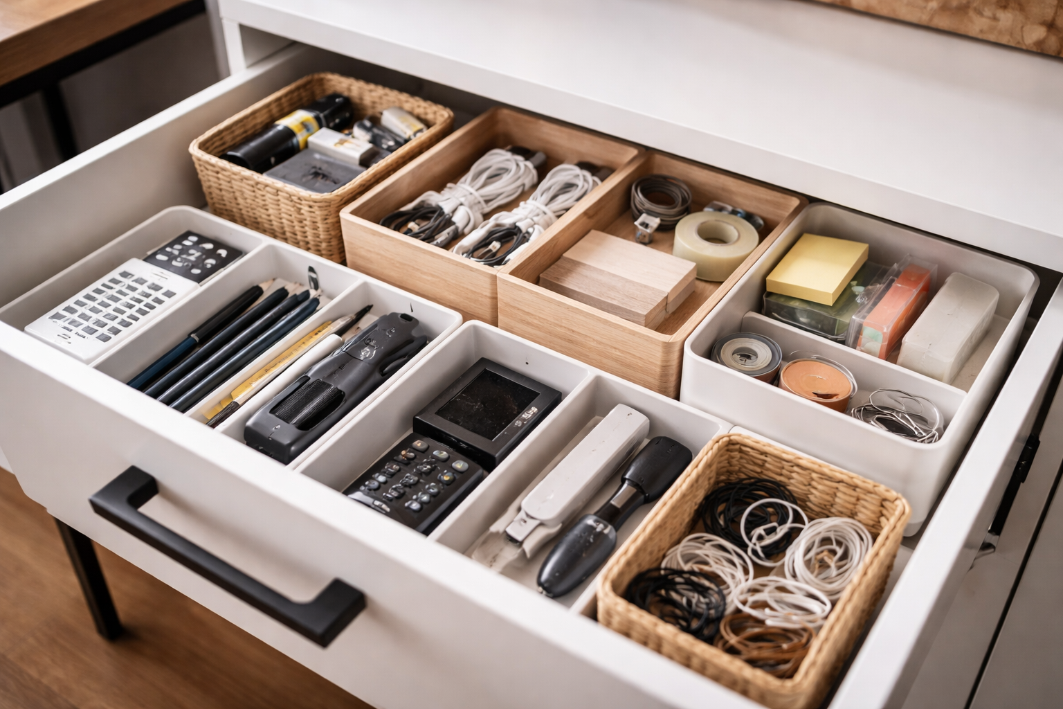 Začnite z enim majhnim predalom v pisalni mizi in postopoma razširite na druge prostore.