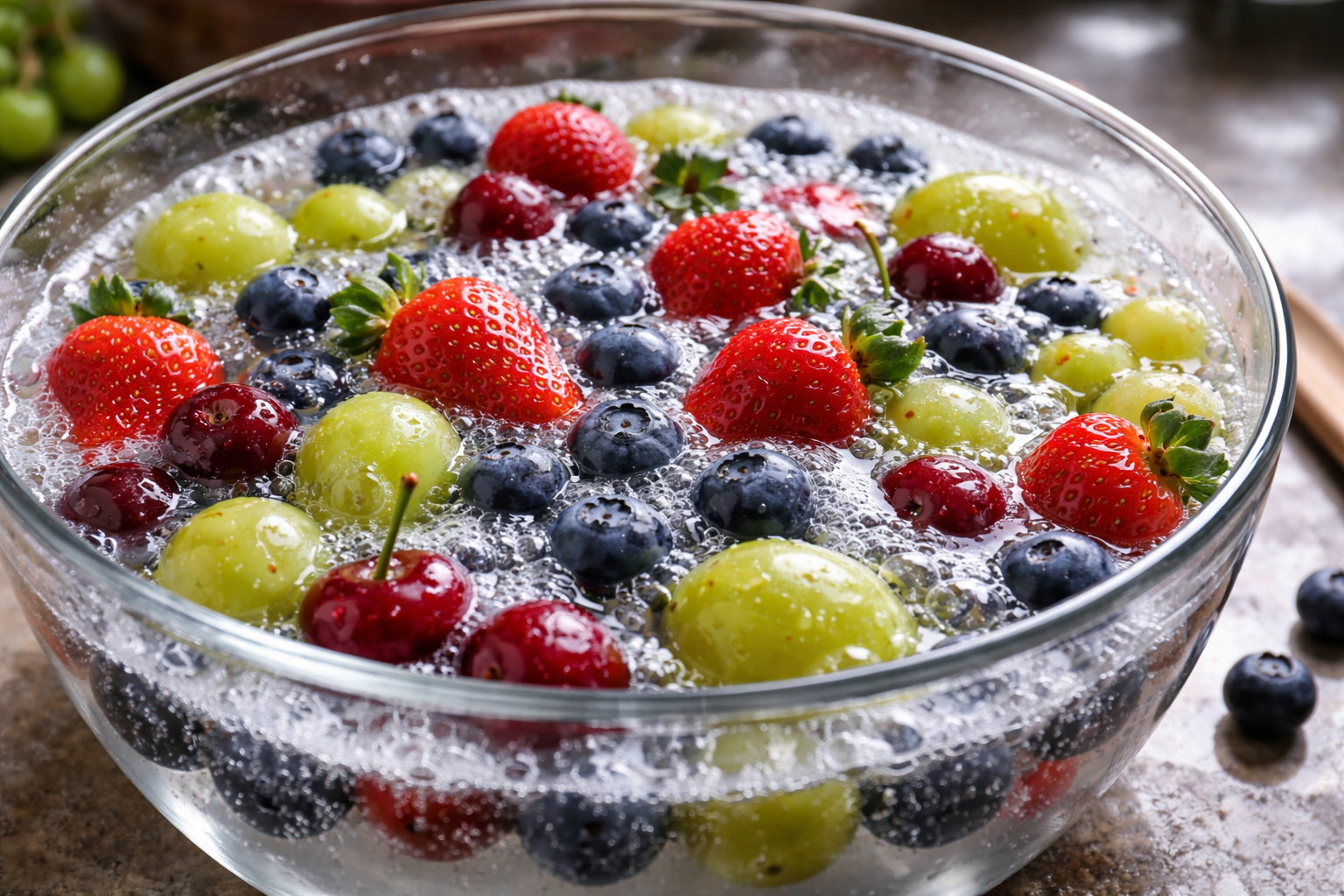 Moja skrivnost: vodi za namakanje grozdja vedno dodajte kapljico svežega limoninega soka, ki takoj raztopi lepljive obloge. Za jagodičevje z porozno strukturo uporabljajte le ledeno kopel, saj bo pulpa ostala popolnoma čvrsta in se ne bo zakisala.