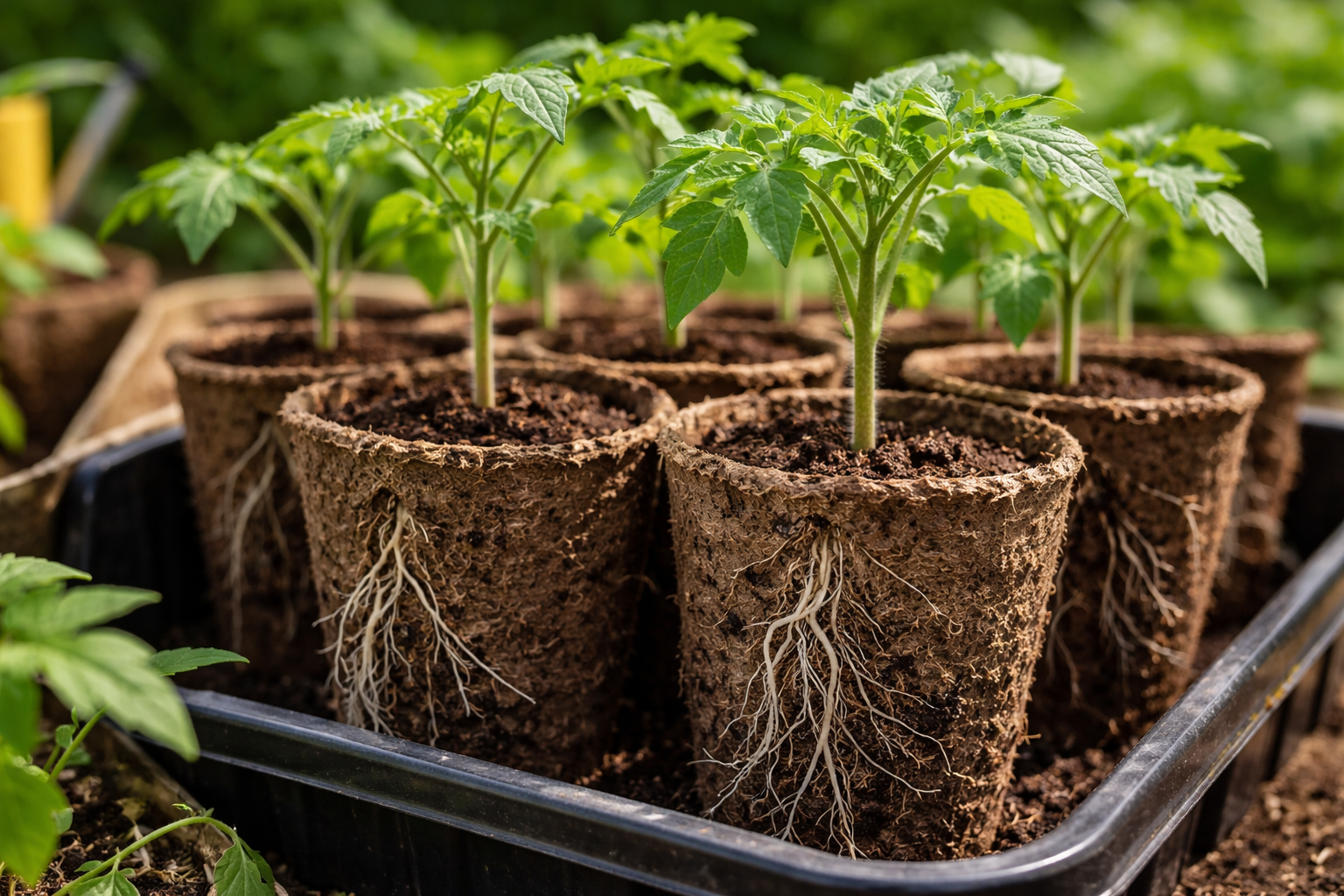 Tradicionalno sadike paradižnika gojijo v plastičnih kasetah, vendar ima ta metoda veliko skritih nevarnosti. Gladke, zrakotesne stene silijo korenine, da se spiralasto zvijajo in tako ustvarjajo tesen preplet. Ko je čas za sajenje, koreninski sistem je neizogibno travmatiziran. Stisnjena organska snov rešuje to težavo na temeljni ravni.