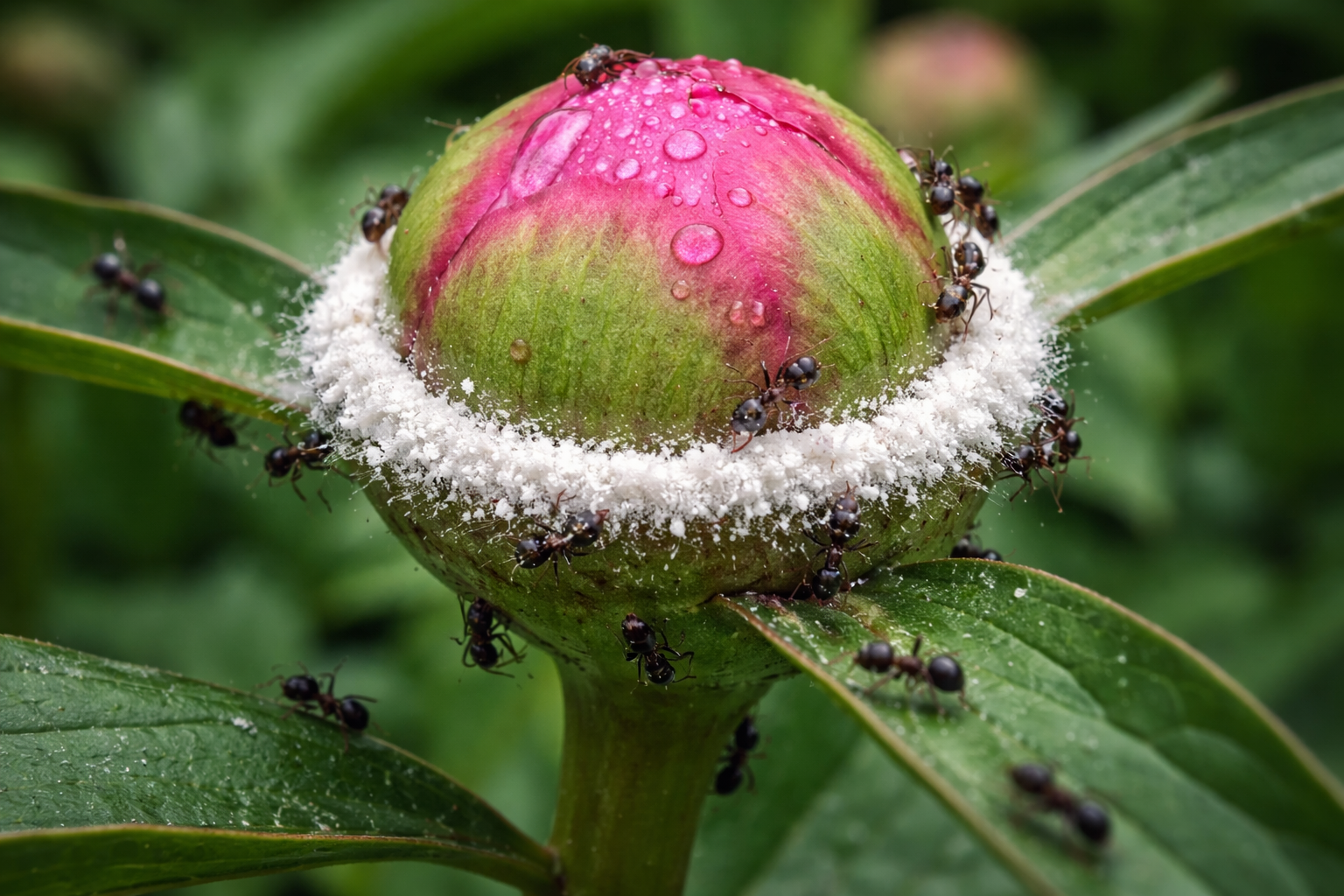 Mravlje ne jedo cvetnih lističev in listov, saj jih privlači le hranljivi sirup, vendar lahko vnesejo mrhe ali poškodujejo zgornjo plast popka, zaradi česar se ta deformira.