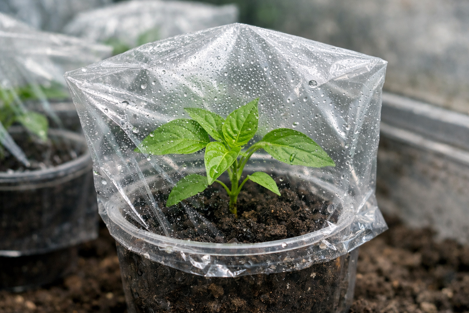 Glavna skrivnost hitrega uspevanja je, da nad vsakim šibkim grmom zgradite mini rastlinjak iz prozorne folije, ki takoj zmanjša izhlapevanje vlage s površine listov.