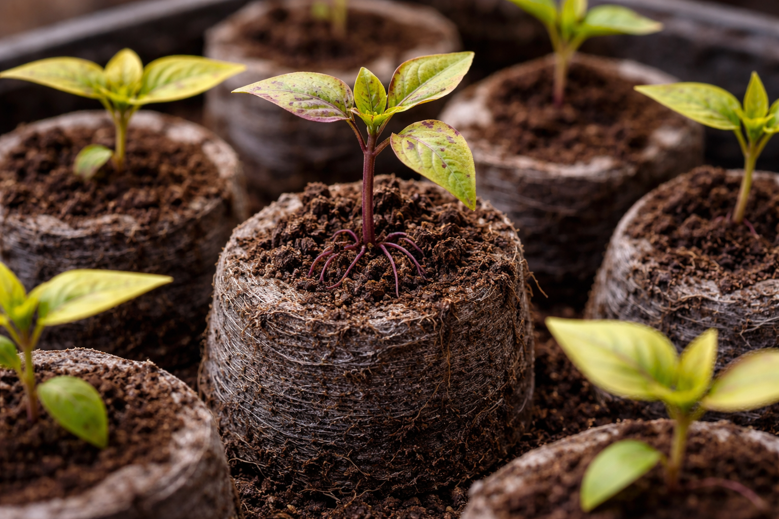 Paprika je izjemno občutljiva koreninski sistemGlavna pomanjkljivost šote je njena naravna kislost. Glavna pomanjkljivost šote je njena naravna kislost. Tudi če proizvajalec navaja, da je prst razkisana, se v praksi šotne tablete se z rednim namakanjem z navadno vodovodno vodo hitro zakisajo. Korenine paprike v kislem okolju takoj prenehajo asimilirati fosfor, zaradi česar se rast popolnoma ustavi, listi pa zaskrbljujoče vijoličasto obarvajo.