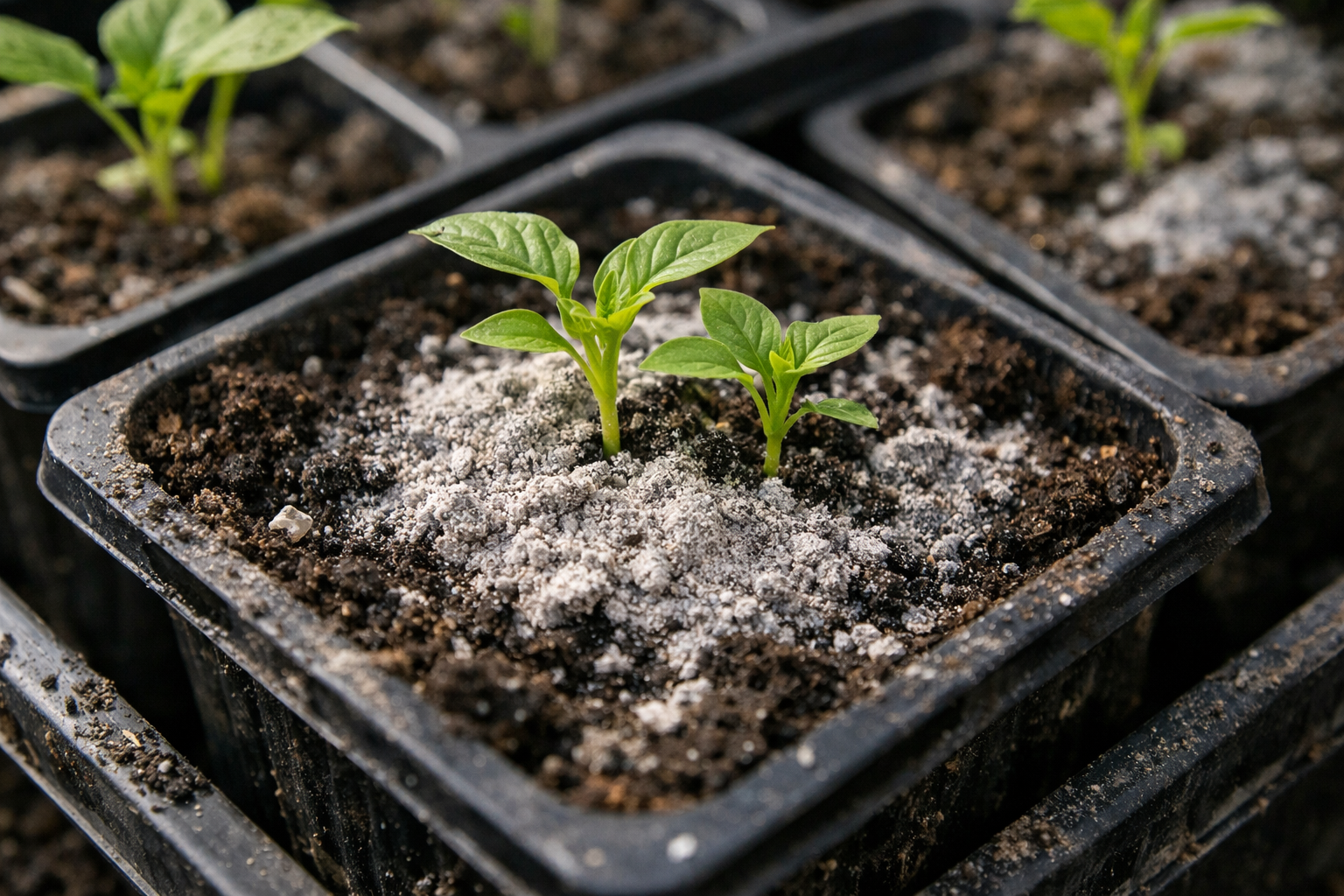 Ta sivi prah ima poleg prehrane tudi najpomembnejšo funkcijo – deoksidacija tal. Šotna tla, ki jih običajno kupujemo za sajenje, so pogosto zelo kisla, kar onemogoča absorpcijo hranil.