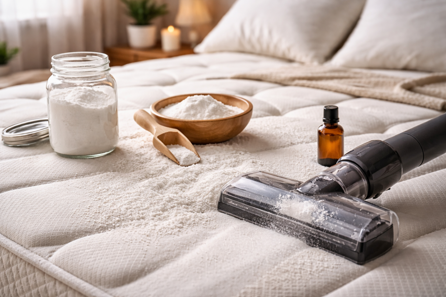 Moja najljubša uporabna življenjska rešitev temelji na kemičnem čiščenju z uporabo močnega naravnega sorbenta. Potrebovali bomo navaden sodo bikarbono in naravna eterično olje sivka. Soda bikarbona iz tkiv dobesedno izvleče vlago in molekule, ki povzročajo ambrozo, olje pa deluje kot naravni antiseptik.