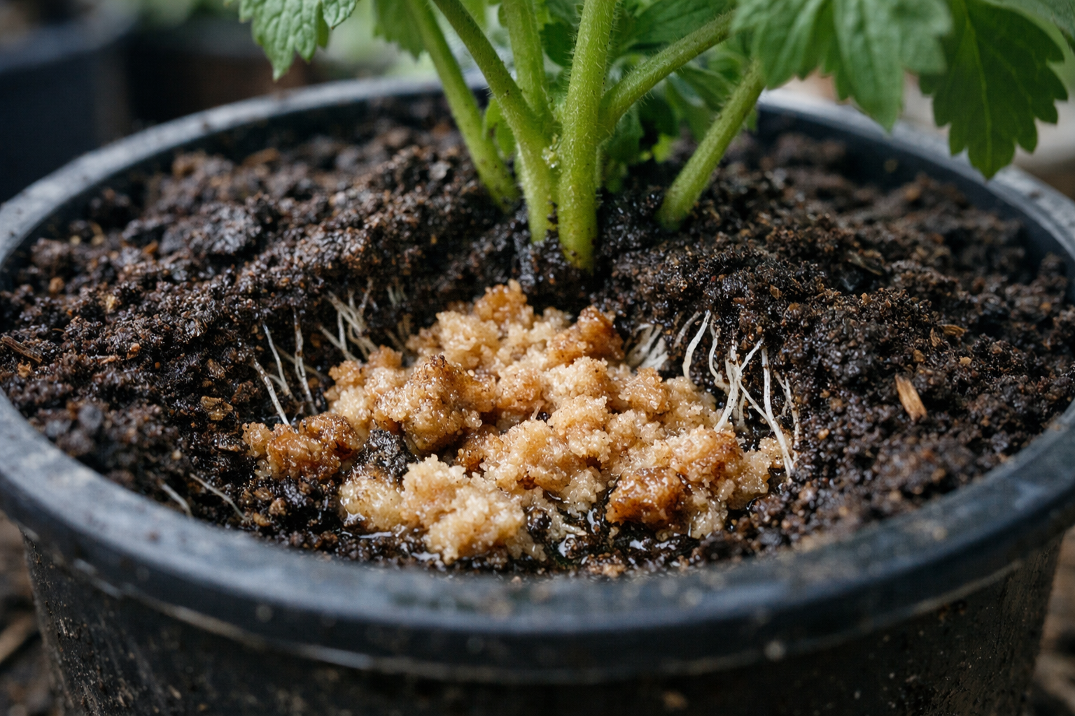 Kruh je odličen vir naravnih kvasa, ogljikovi hidrati и aminokisline. Te sestavine ob vnosu v tla aktivirajo koristne mikrofloroki reciklira organske snovi in koreninam omogoči dostop do hranil. To ustvarja učinek “toplega ležišča” neposredno v lončku s sadikami, kar je še posebej pomembno v hladnem spomladanskem obdobju.