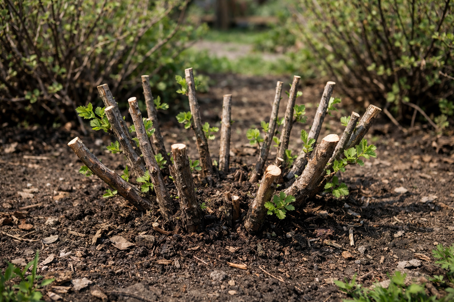 Vedno odstranite “vejice” – pokončne poganjke, ki rastejo iz korenine v notranjosti grma. – Če je veja le delno poškodovana, jo odrežite do prvega zdravega popka.