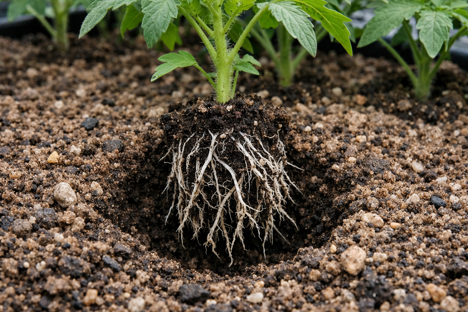Skrivnostni odtenek se skriva v umetnem stresu: ko se korenine paradižnika znajdejo v prazni zemlji, se morajo aktivno širiti v iskanju hranil, ki tvorijo trdne temelje za prihodnji pridelek.