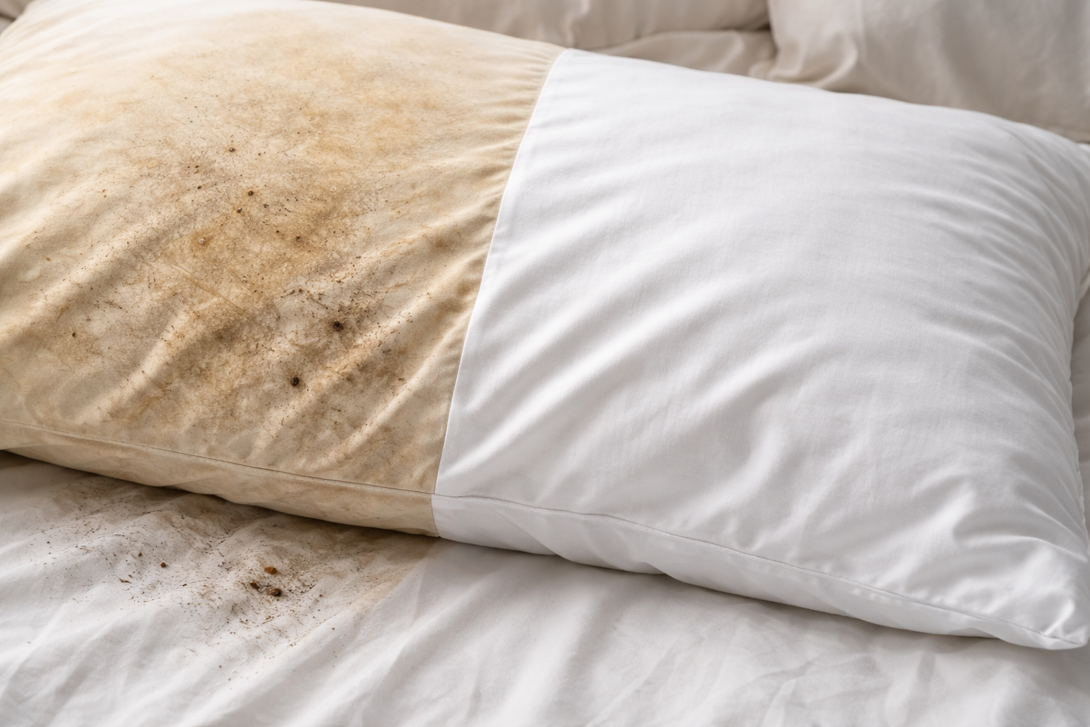 Skrivnostni odtenek: če imate občutljivo kožo, prevleko za vzglavnik zamenjajte vsaka dva dni tako, da pred spanjem vzglavnik preprosto obrnete na čisto stran.