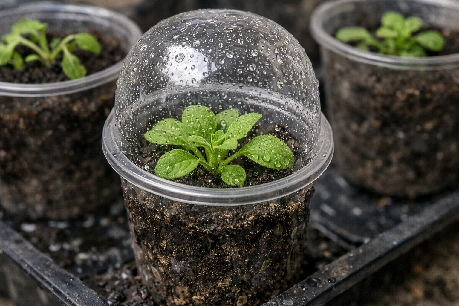 Vsako sadiko pokrijte s prozorno plastično kapuco ali folijo.