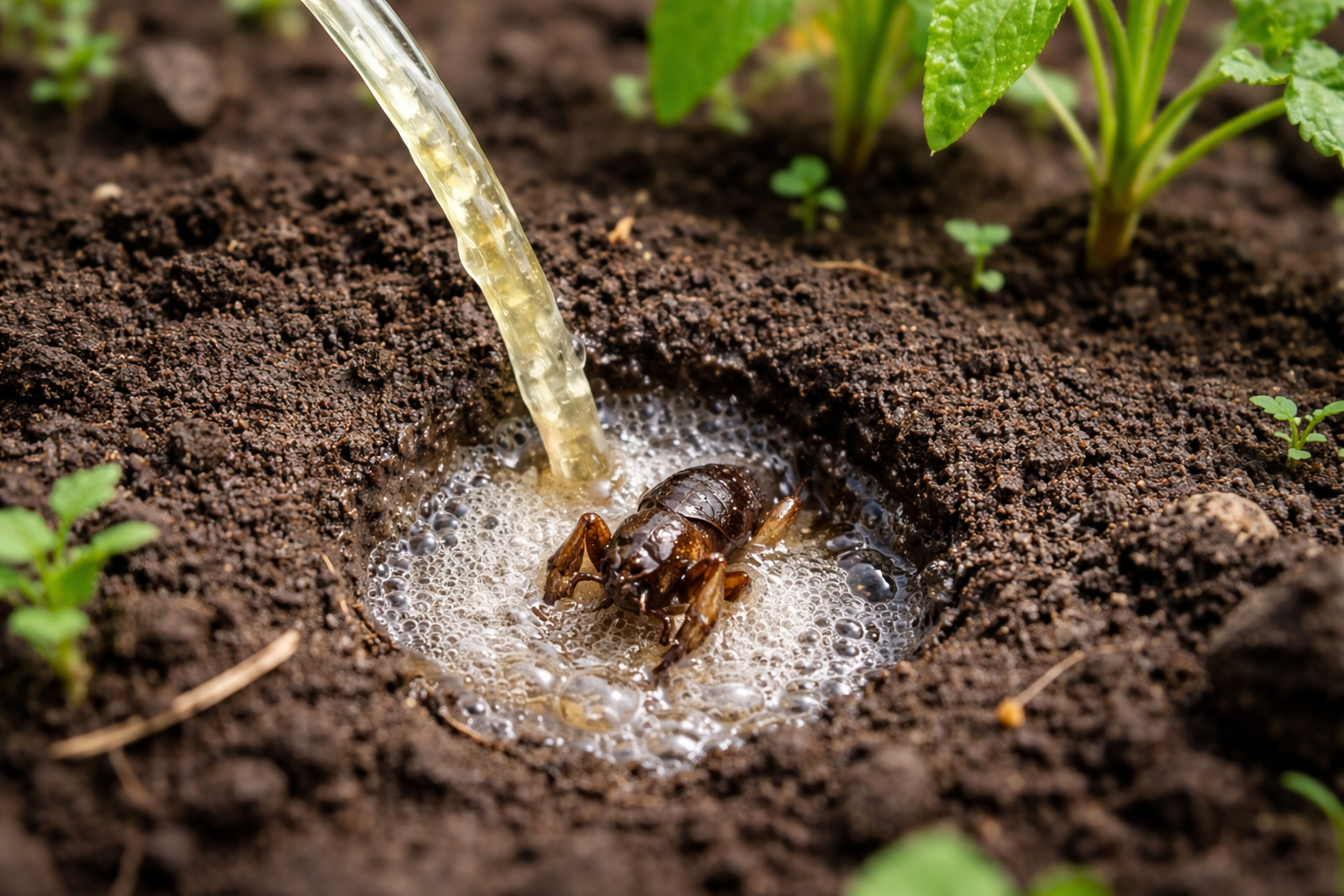 Tekočino vlijte neposredno v tečaj, dokler se na površini ne pojavi škodljivec.