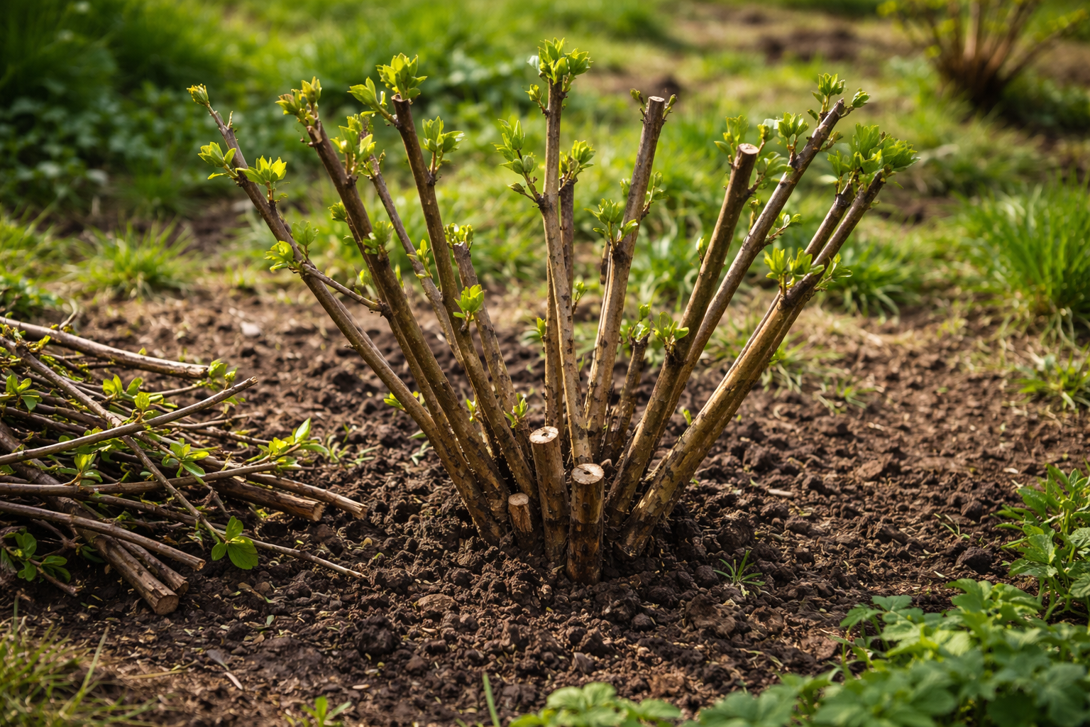 Nekaj najmočnejših ničelnih poganjkov pustite na grmu, da v prihodnosti nadomestijo stara debla.