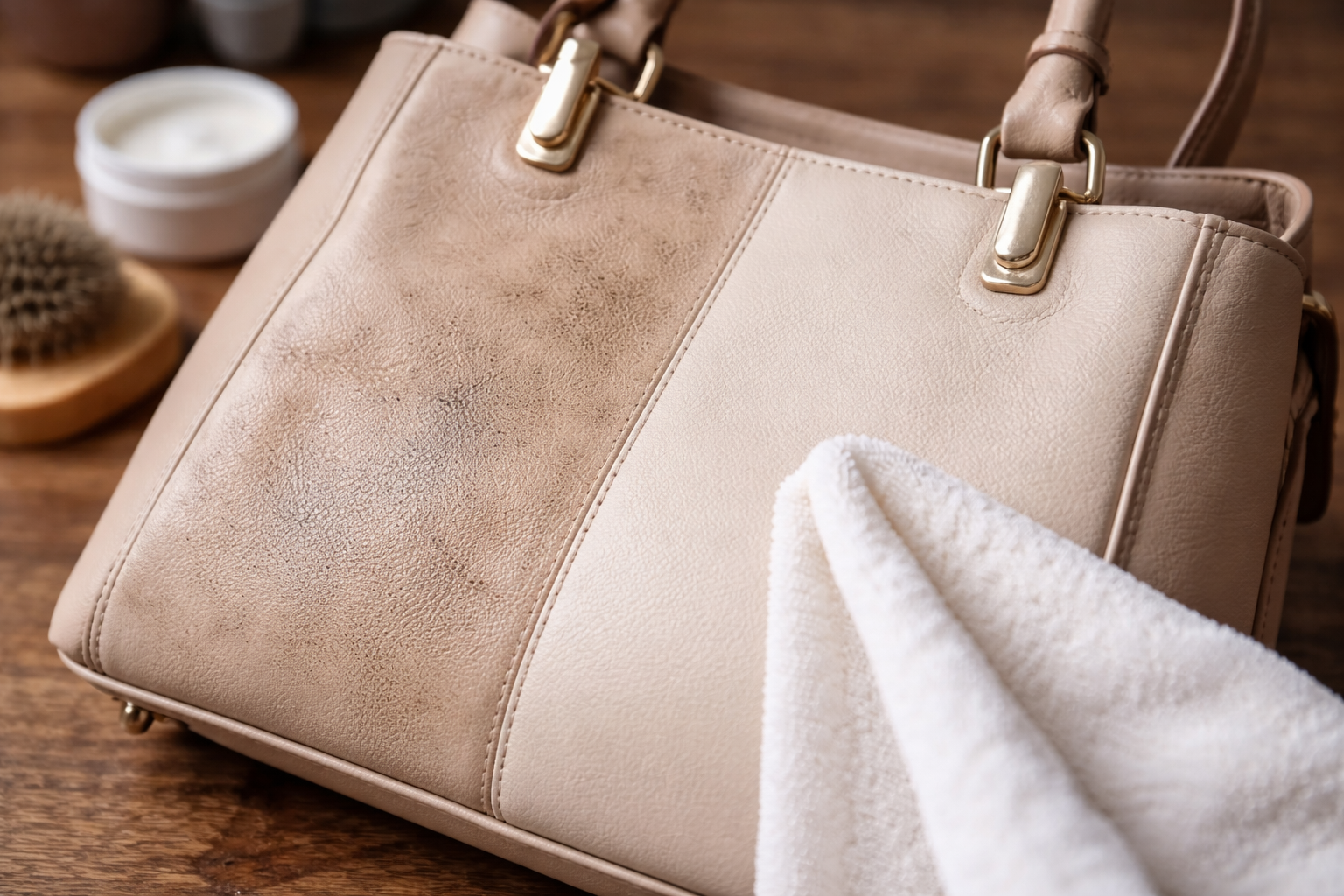 Naravno usnje in kakovostni nadomestki ne prenesejo veliko vlage, zato mora biti postopek čim bolj suh in nežen. Običajni mokri robčki pogosto pustijo belkaste proge, ki se jih je težko znebiti.