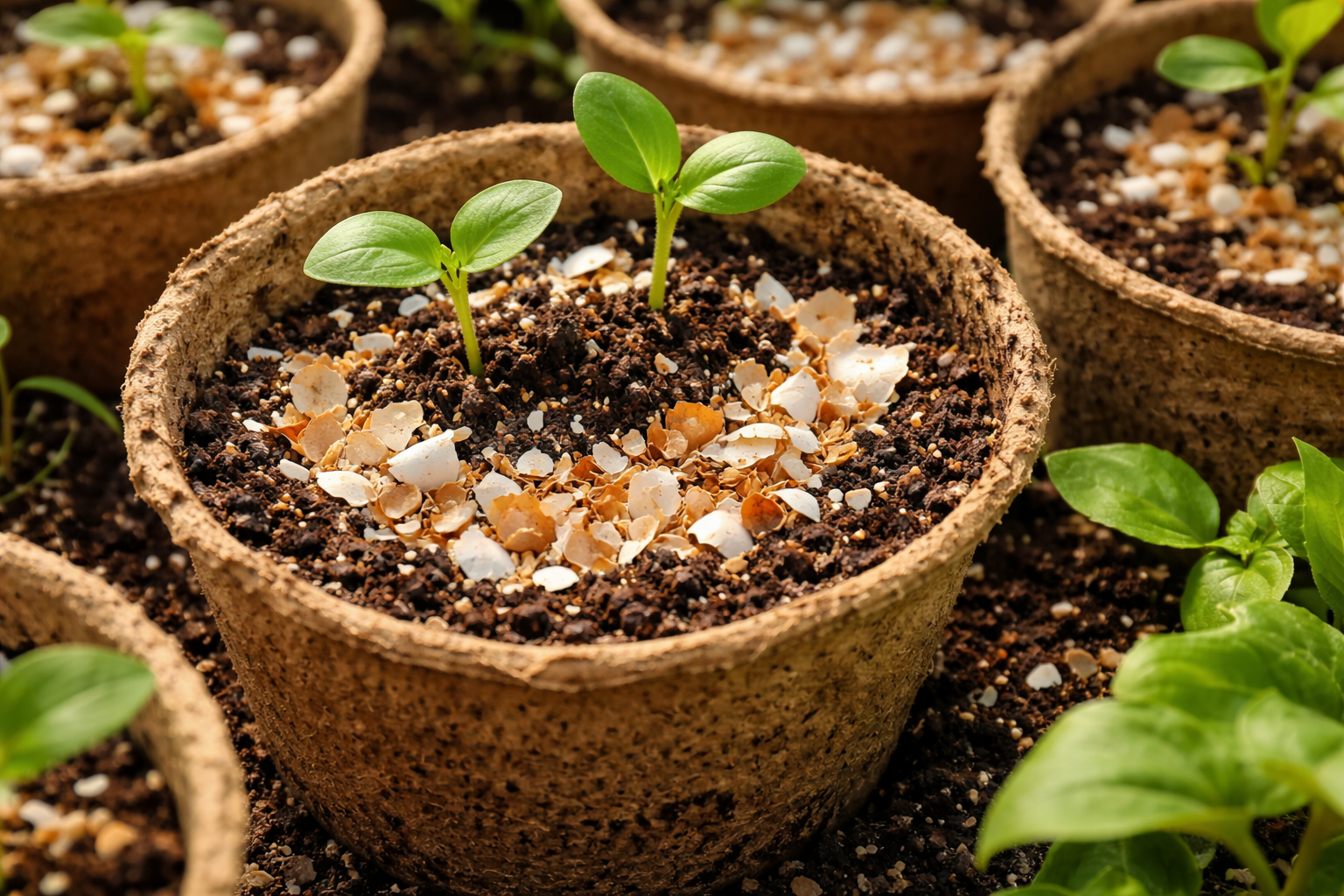 Za sadike paradižnika in paprike na dno vsake skodelice položim plast. To je še posebej pomembno, če uporabljate posode brez drenažnih lukenj. Kalcijki ga vsebujejo lupine, krepi celične stene rastlin, zaradi česar so rastline pri sajenju na prostem bolj odporne na temperaturna nihanja.