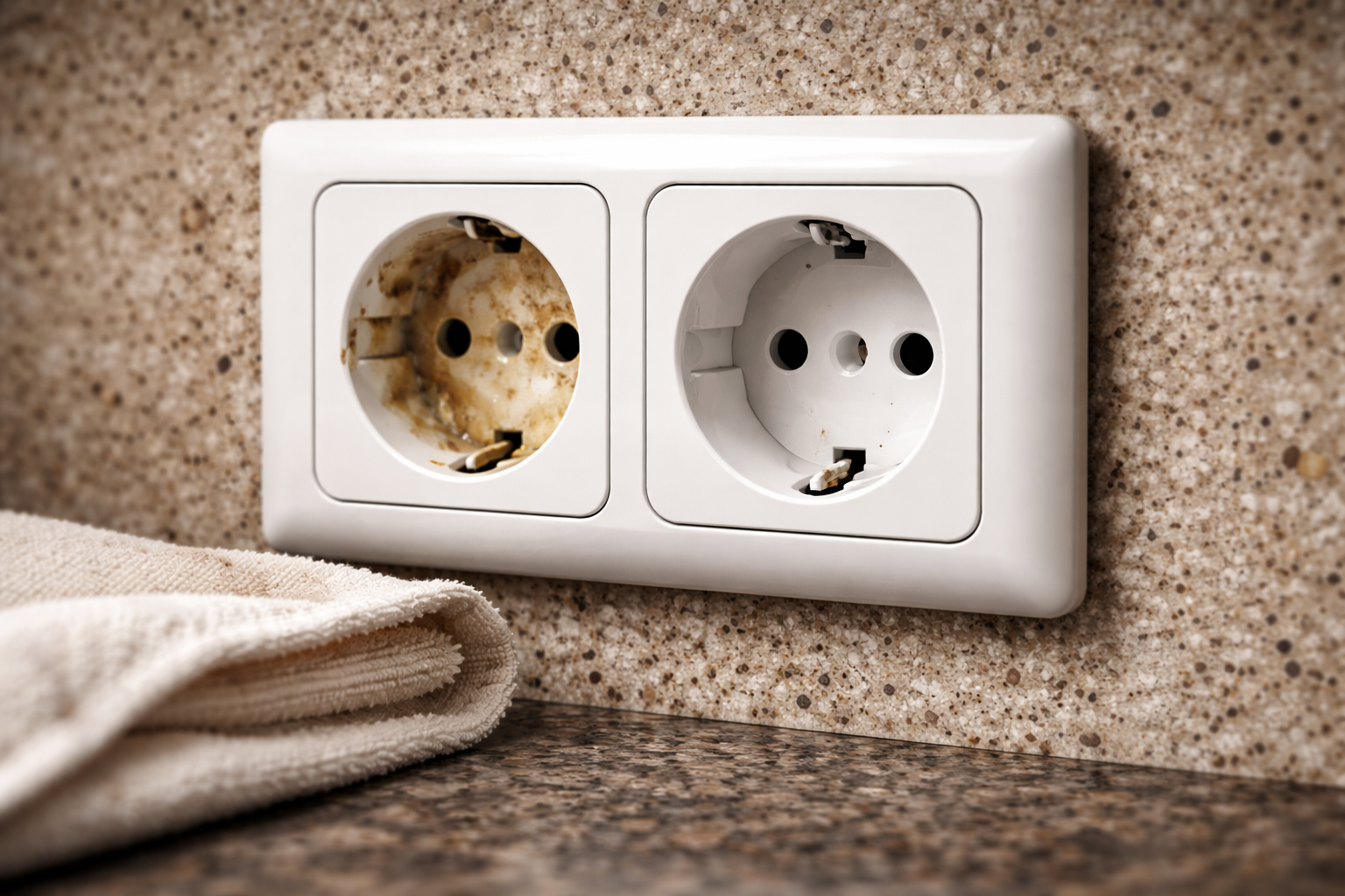 Ko vtič zmogljive naprave vstavite v umazano vtičnico, slab stik povzroči iskre. To povzroči dvig temperature, taljenje plastike in večkratno povečanje tveganja za materialno škodo.