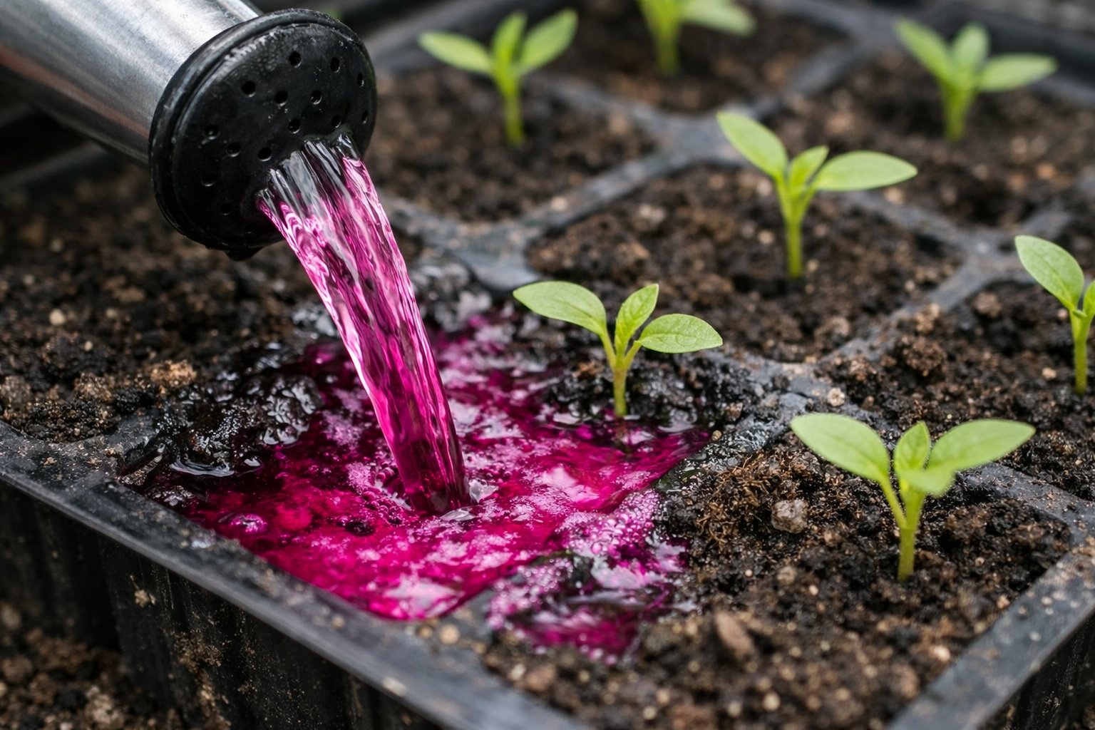 Spomladansko sajenje pogosto zaznamujeta črna noga in šibek koreninski sistem rastlin zaradi hladnih tal. Pri reševanju te težave in hitrem razkuževanju tal brez agresivne kemije bo pomagalo pravilno zalivanje z raztopino mangana, ki bo sadikam zagotovila zanesljivo zaščito in potrebne mikroelemente.