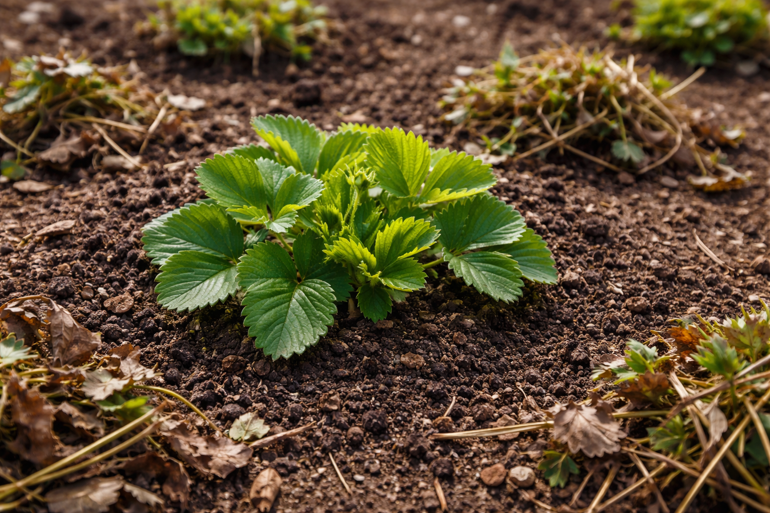 Sanjate o vedrih velikih in sladkih jagod, vendar grmički vsako leto dajo le majhen kisel pridelek in se nenadzorovano zaraščajo z mušnicami? S to težavo sem se spopadal več let, dokler nisem prišel do popolnega spomladanskega čiščenja in gnojenja, ki sproži hitro rast cvetnih stebel in ne zelene mase.