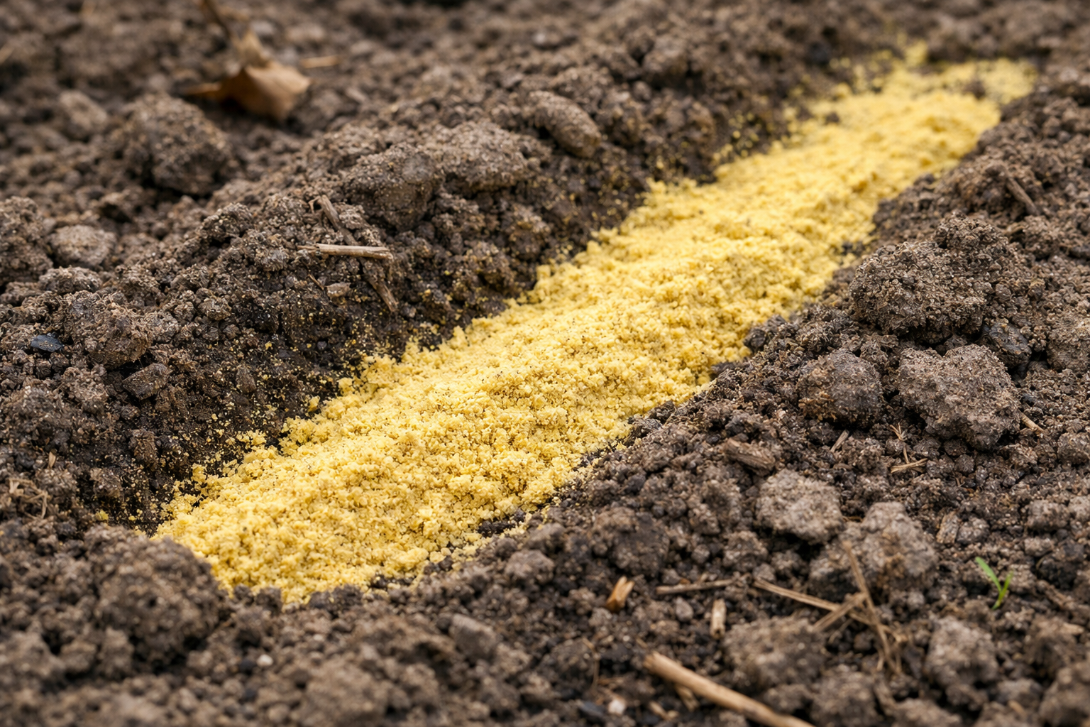 Gorčica v prahu se med sajenjem zlije neposredno v luknje.